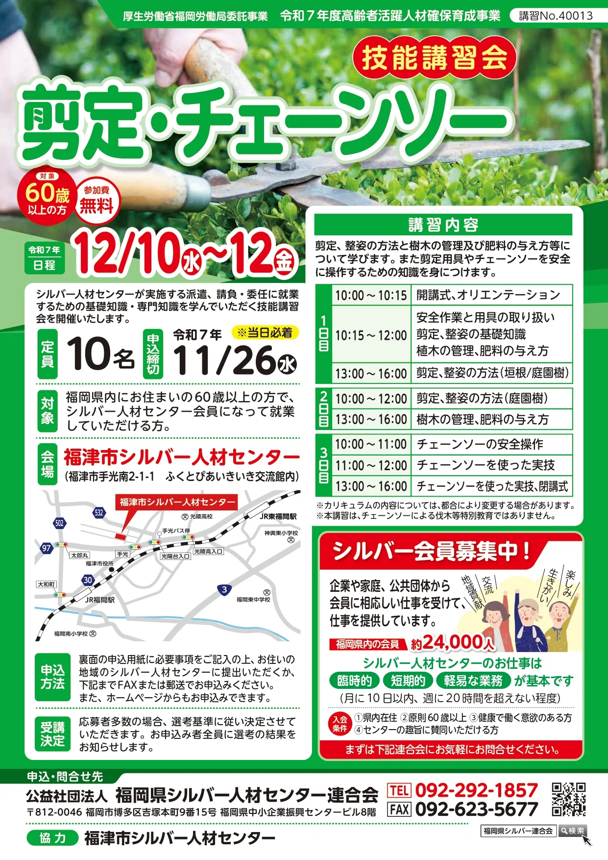 福岡県内にお住いの60歳以上の方で、シルバー人材センター会員になって就業していただける方。